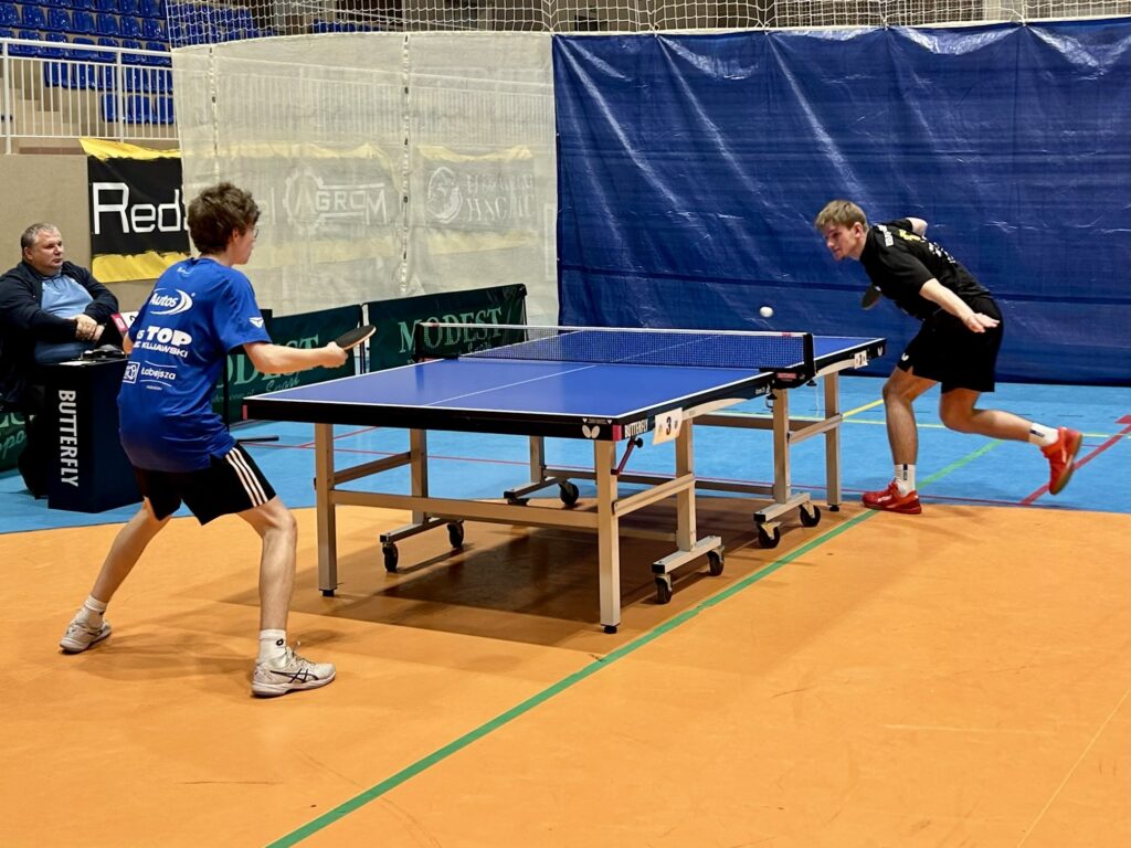 Mecz rozpoczął się od wygranej Mateusza Dzikowskiego nad Cyprianem Piekutowskim 3:0 oraz pięciosetowego boju Mateusza Dykowskiego z Adamem Dudziczem, wygranego przez naszego zawodnika. Po chwili na dwupunktowe prowadzenie wyprowadzili nas Szymon Seroka (3:1 z Mateuszem Żelengowskim) oraz Kacper Głazowski (3:0 z Marcinem Woskowiczem).
